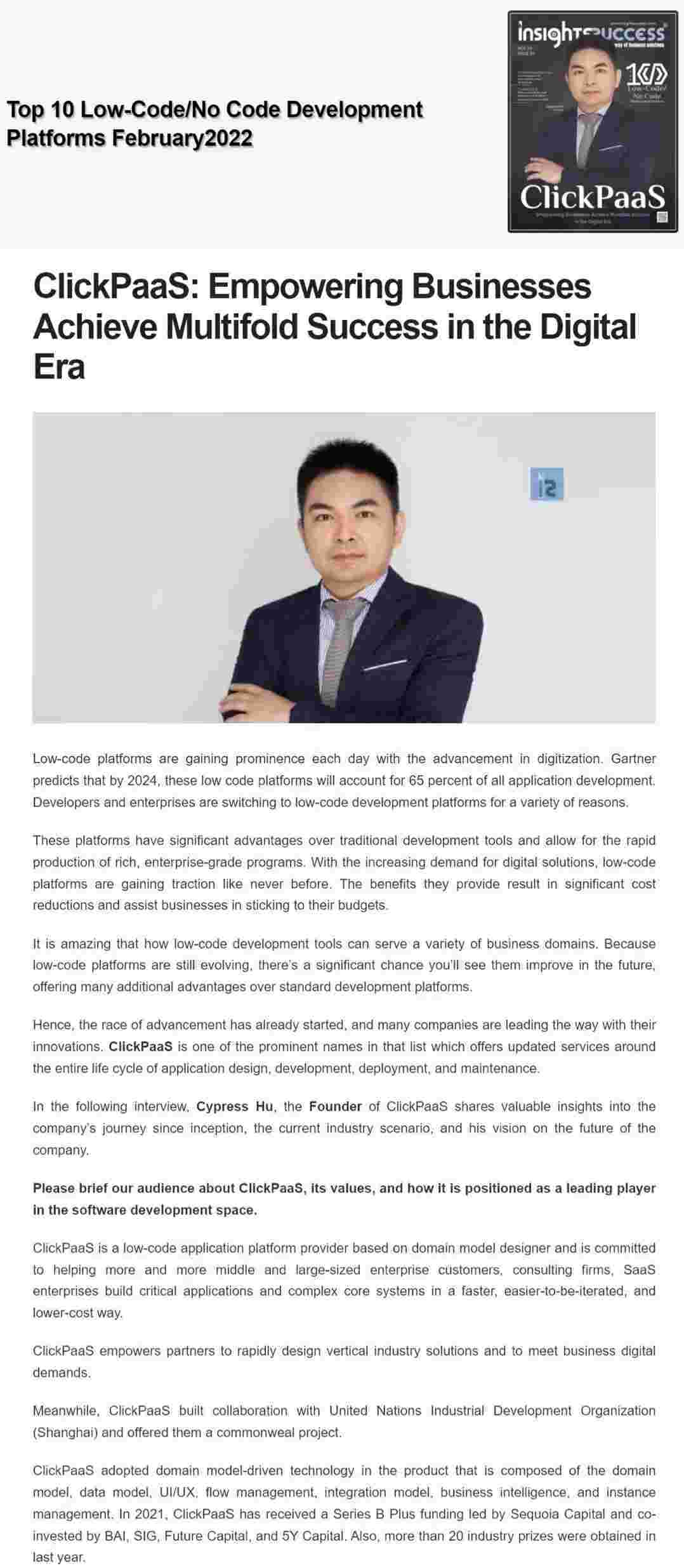 2022年年初,,,GOPAY钱包入选外媒Insights Success低代码/无代码开发平台 Top10,,,,创始人、、、、CEO胡柏受邀接受专访并荣登封面人物,,,,他与Insights Success的读者分享了GOPAY钱包成立的初心、、发展历程、、、当前的行业发展趋势以及他对公司未来的展望。。。