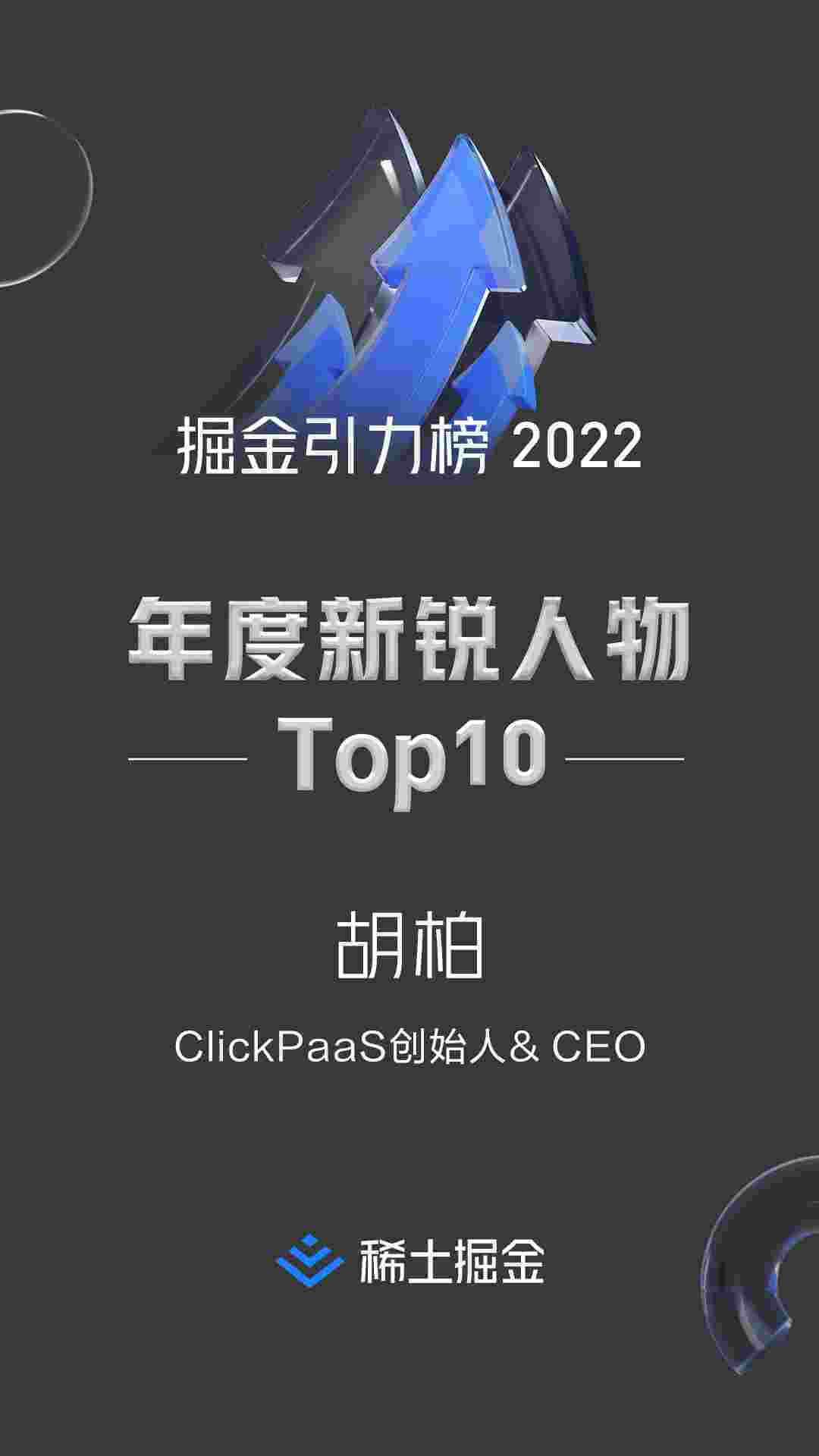 2022年1月6日,,,稀土掘金社区第一届「掘金未来大会」成功举办,,会上发布了“2022 稀土掘金引力榜 年度新锐人物”榜单,,,,上海爱湃斯科技有限公司(简称GOPAY钱包)创始人及CEO胡柏实力入选年度新锐人物TOP 10。。。
